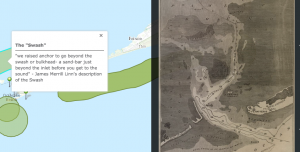 Hatteras. In particular, he wondered whether Linn’s observations about the foundering of specific ships after a catastrophic storm could be traced using contemporary nautical maps used by pilots in Pamlico Sound. Through his close reading of both the diary, contemporary accounts of the storm, and a set of maps from 1861-1863, Loomis was able to pinpoint the locations of the ships he identified.